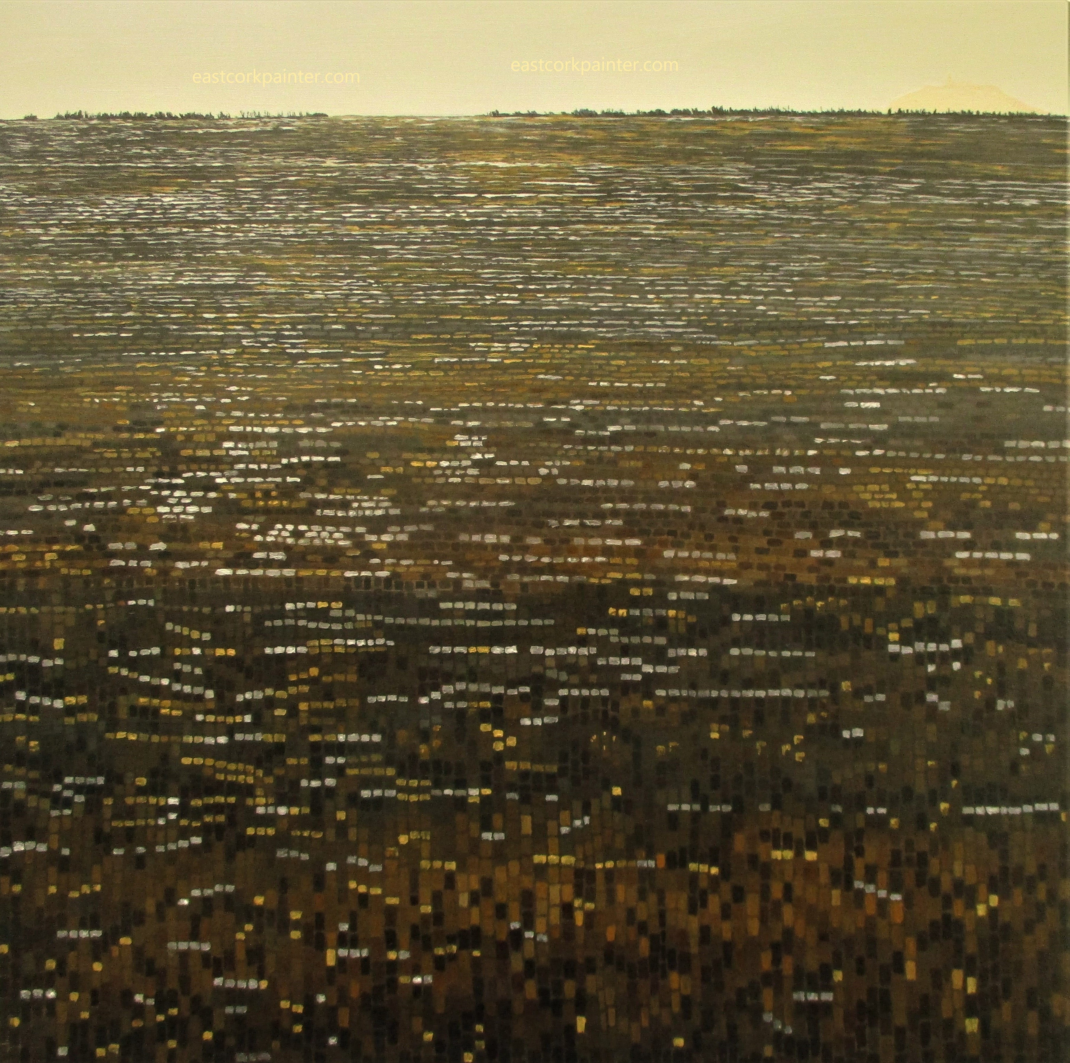 by eastcorkpainter in art, landscape and tagged 2020 painting, crazy detailed mosaic painting, detailed mosaic painting, glistening webs in winter morning light, gold and silver mosaic field painting, gold and silver mosaic painting, golden sunlight tessellations painting, hundreds of webs painting, iridescent shimmering webs, morning dew painting, mosaic acrylic painting, mosaic landscape painting, niall mccarthy artist, shiny silken threads webs, tessellated landscape painting, tessellation landscape painting, tessellations, tiles, webs and stubbles painting |