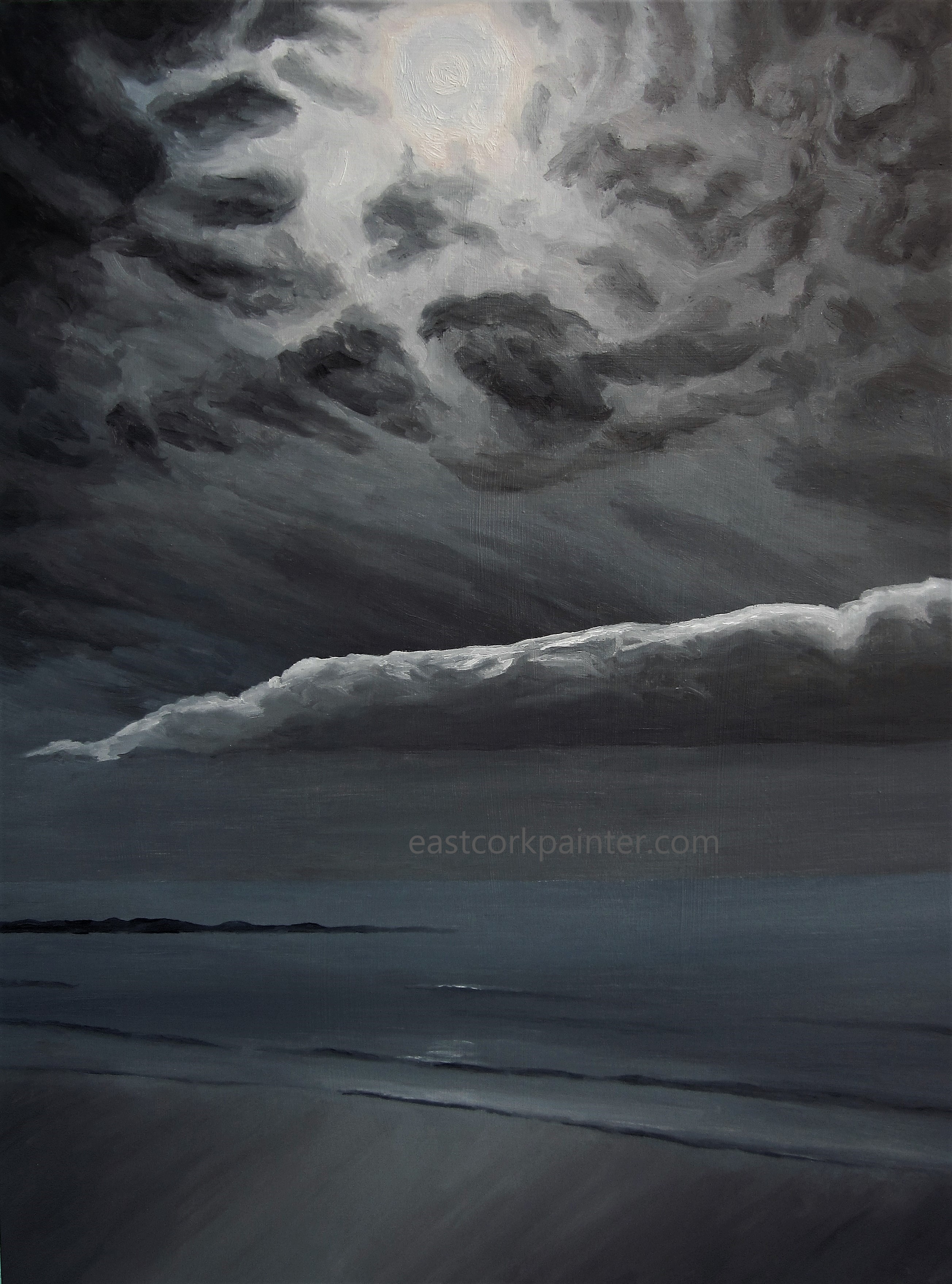 by eastcorkpainter in moon and tagged 2016, art, atmospheric, beach, bright, calm, calming, clouds, cloudy, colors, colours, dancing, darkness, dramatic, full, garryvoe, glow, glowing, ireland, irish, lining, moon, moonlight, moonlighting, moonlit, muted, mystic, mystical, niall mccarthy, night, oil, oils, painting, peaceful, realism, realistic, scene, sea, seascape, shore, silver, sky, study, supermoon, tranquil, water |