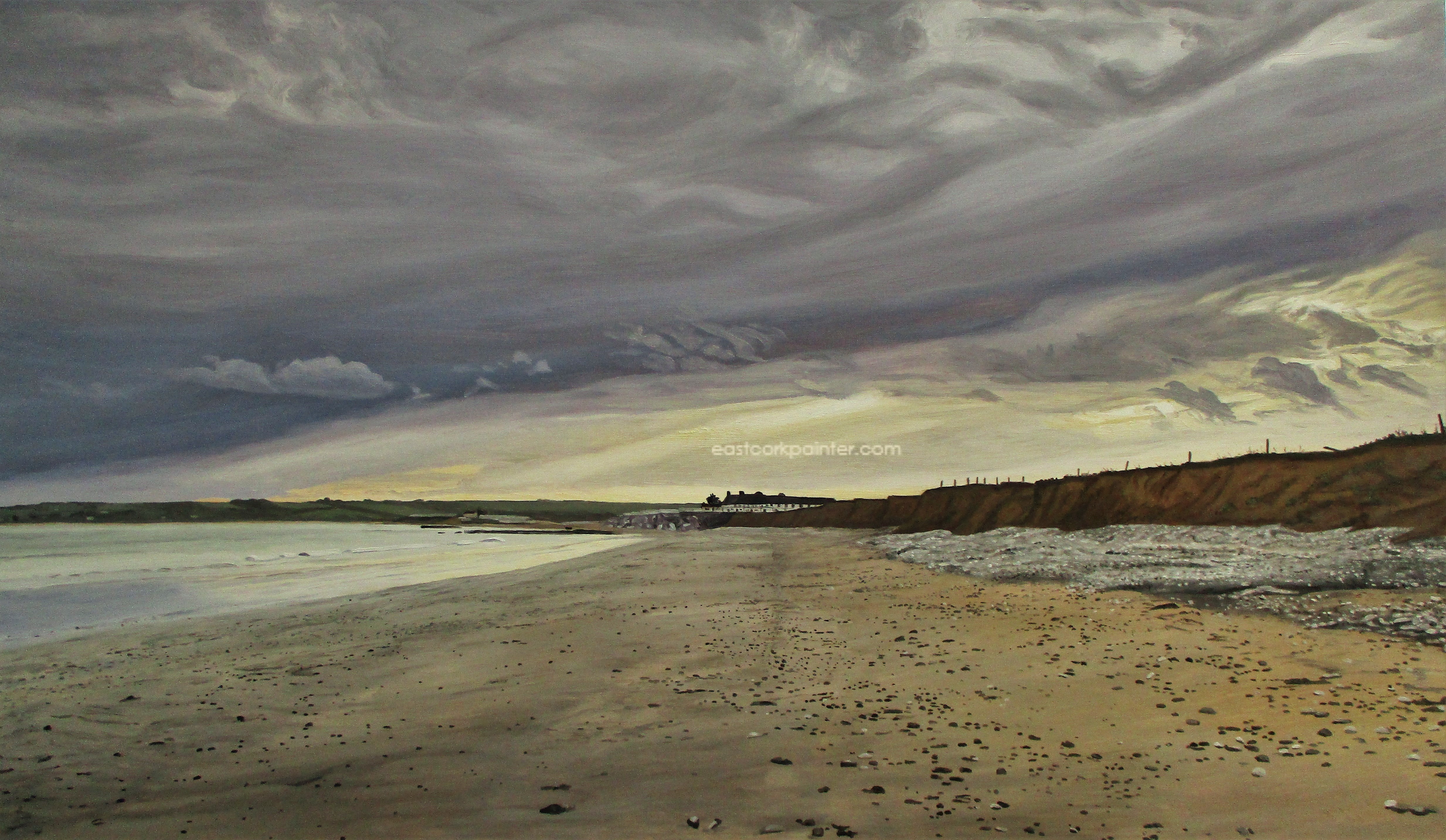 Slanted Sunlight Over Garryvoe Beach January 4, 2018 by eastcorkpainter in art and tagged art, coast, coastal, east cork, garryvoe beach, golden, ireland, irish, niall mccarthy, painting, realistic, shore, sky, slanted, strand, sunlight, swirling, water mixable oils | Leave a comment