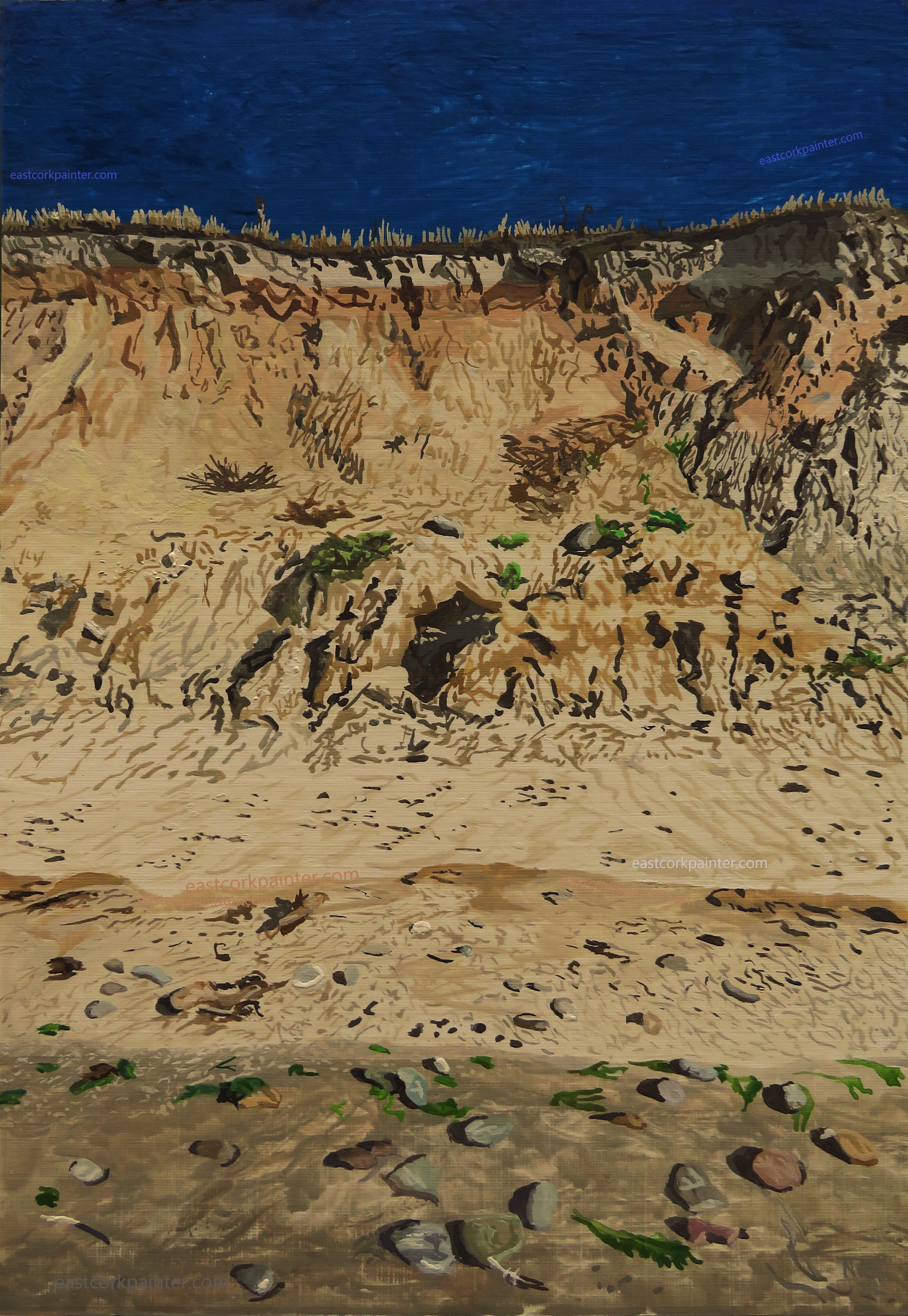 Cliff Face During The August ’22 Heatwave October 6, 2022 by eastcorkpainter in art and tagged art, azure sky, beach, cliff face, deep blue sky, detailed, gouache, morning, niall mccarthy, painting, photorealism, photorealistic, realism, realistic, sandy, sharp, unusual | Leave a comment