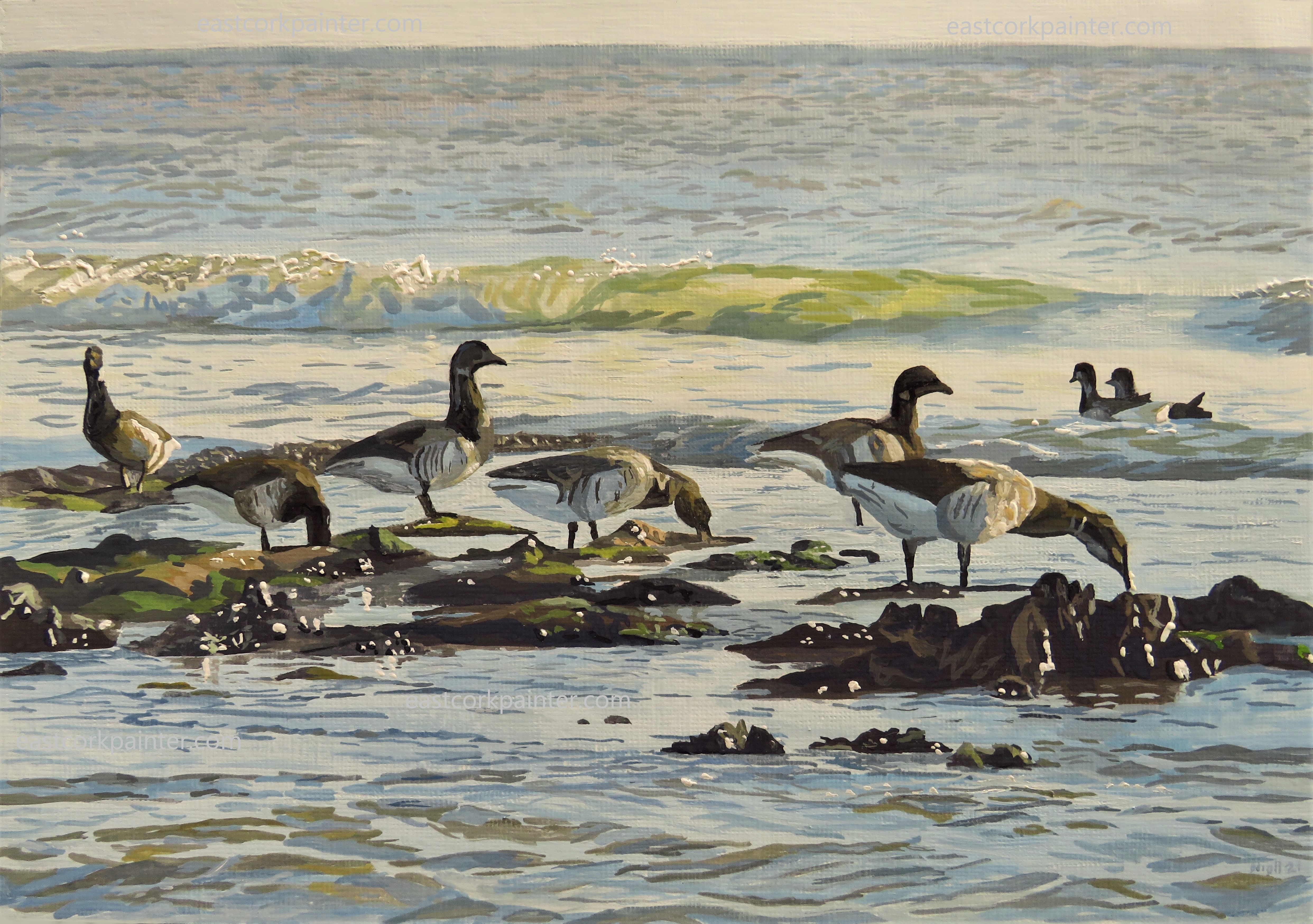 Brent Geese – Sold November 6, 2021 by eastcorkpainter in art and tagged brent geese, detailed, east cork, gouache, ireland, irish, loose but realistic, niall mccarthy, painting, photorealistic, realistic, sea, wildlife, winter morning light, winter seascape | Leave a comment Prints here