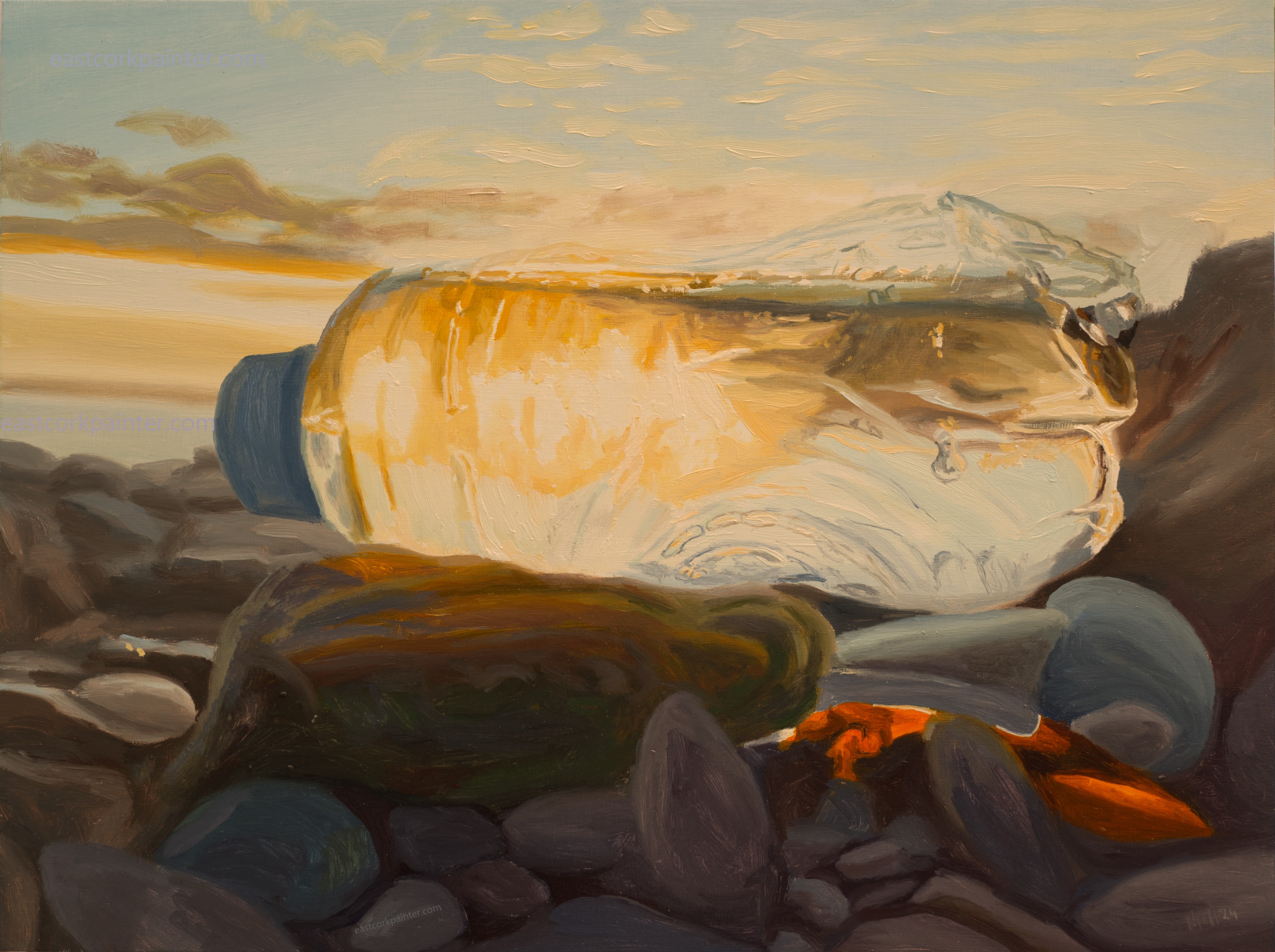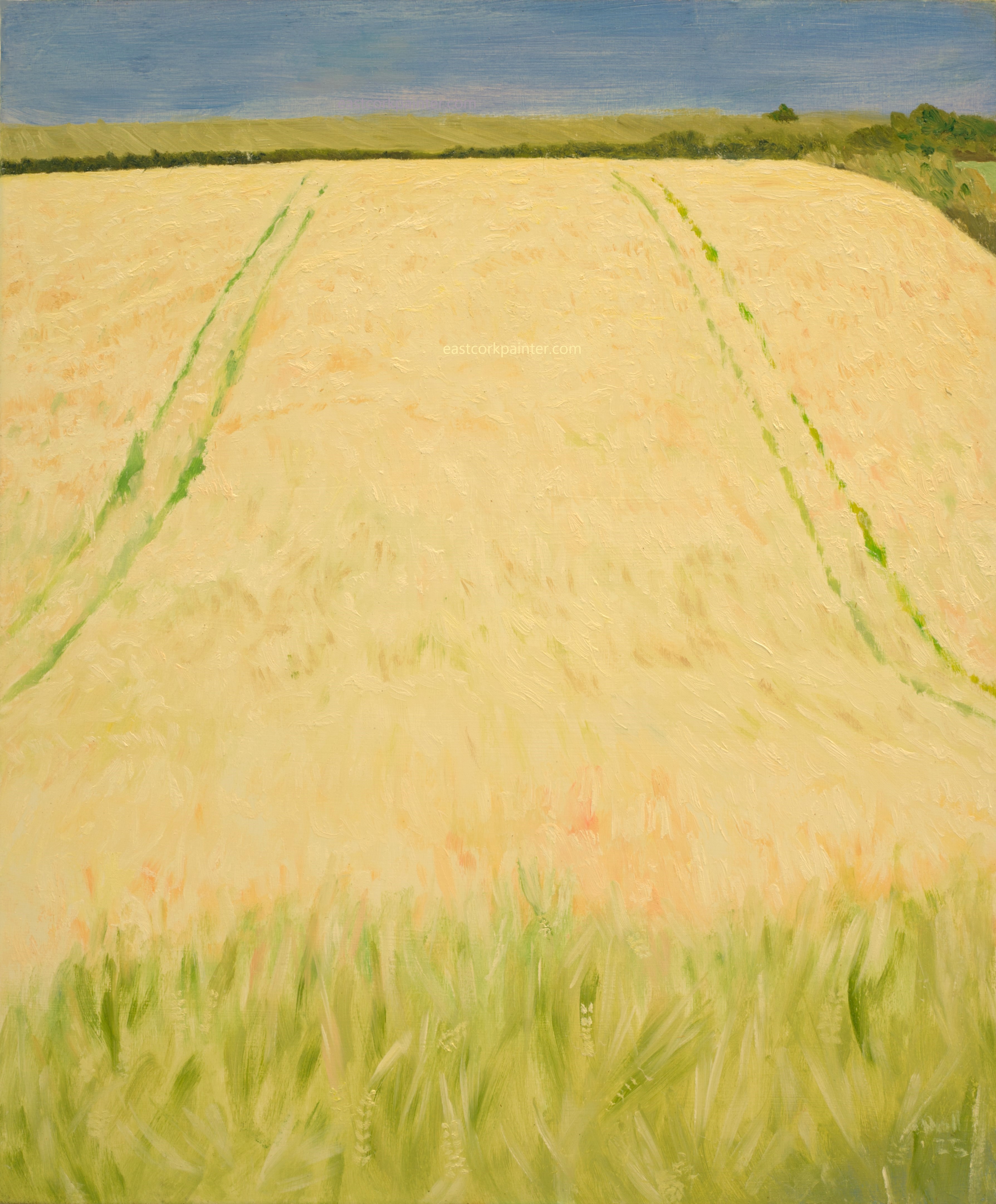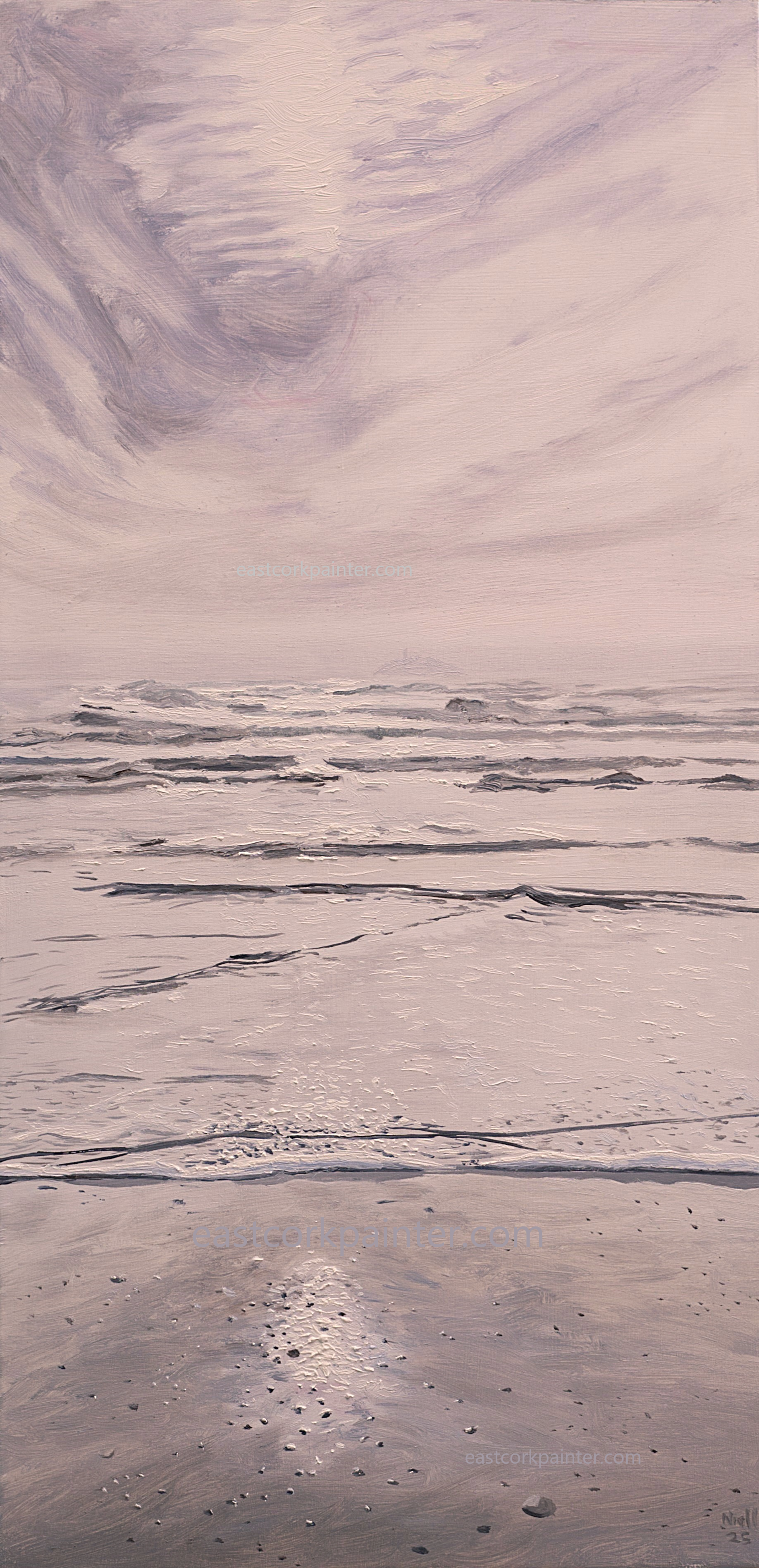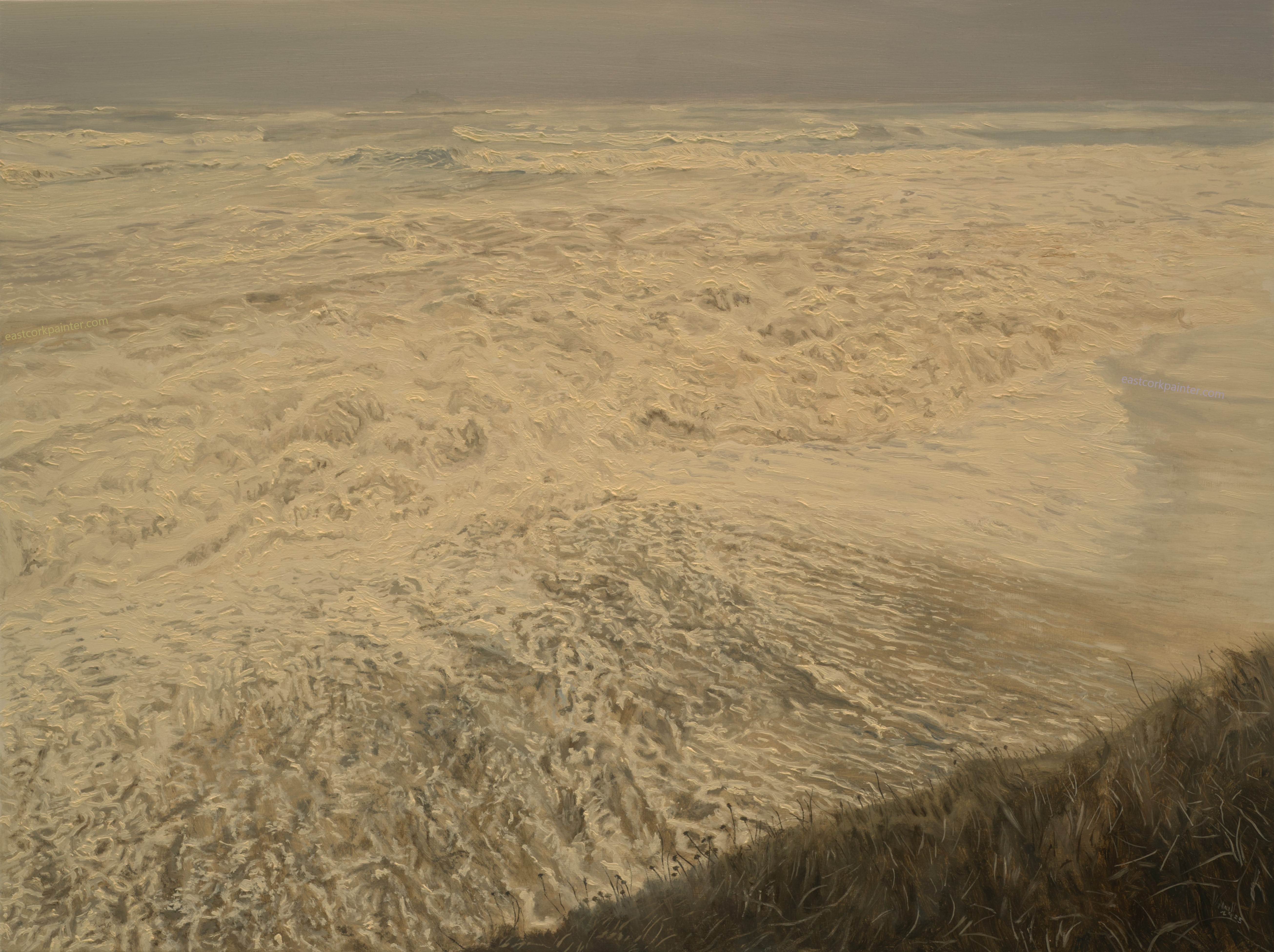 Times of the year when daylight gets rapidly longer or shorter (late March and April, October) tend to bring out vivid dreams or nightmares for me. I wake at dawn. I’m exploring that in-between moment when the dream is still fresh and you’re not sure where you are. The wood of suicides from Dante’s Inferno features in the middle in the door area and various personal memories surround it. Limited palette of ultramarine blue, raw umber and bluish silver. I painted it in casein and it gives a unique look.