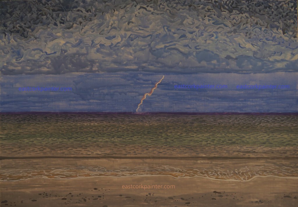 Lightning September 26, 2022 by eastcorkpainter in art and tagged art, atmospheric, beach, bolt, charged, detailed, gouache, ireland, irish, lightning, memory, niall mccarthy, painting, realistic, seascape | Leave a comment