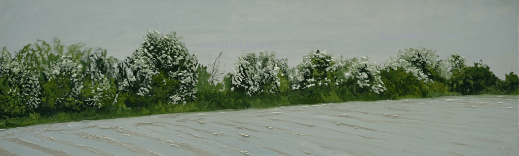 I’ve had a long, rough winter, so when I saw the hydrangea in my front flower bed coming back to life at the start of March, I felt an urgent need to paint it outside. I used a new green, ‘theatre green’ very bright and perfect for capturing the fresh vibrancy of new leaves. The branches painted loosely to highlight their fragility.