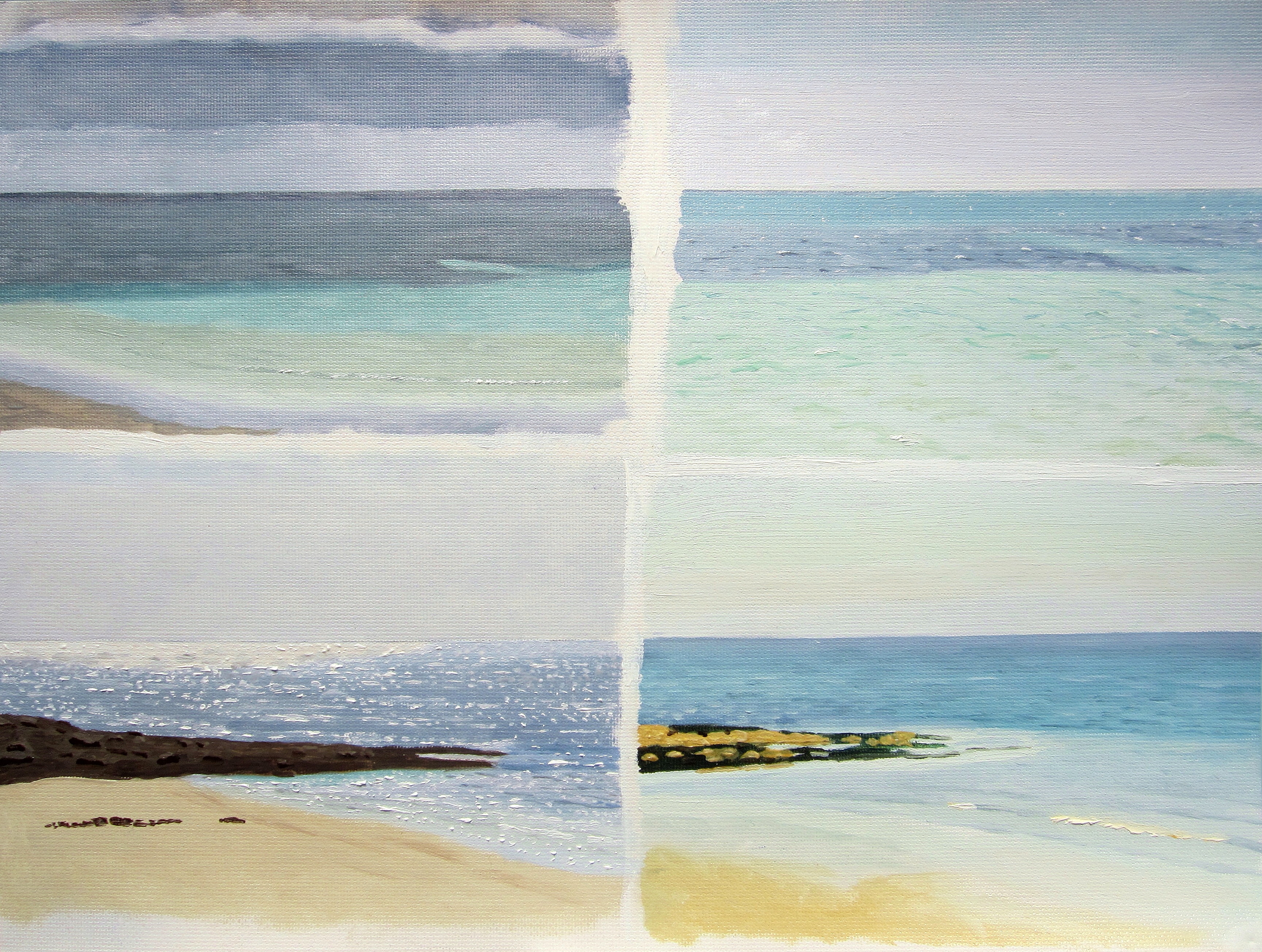 We’re having a rare week of continuous fine weather. So I’ve been doing a lot of painting outdoors, which is how I began my art 14 years ago. Also I’m using oils which I haven’t been using since September, 2012. I went to a nearby car park by a beach, Ballinwilling strand. I decided to do four little pictures of the same view at different times of the day and the sea at different tide levels. They are on the one page so you get the idea of how the sea constantly changes. I’m satisfied with this work.