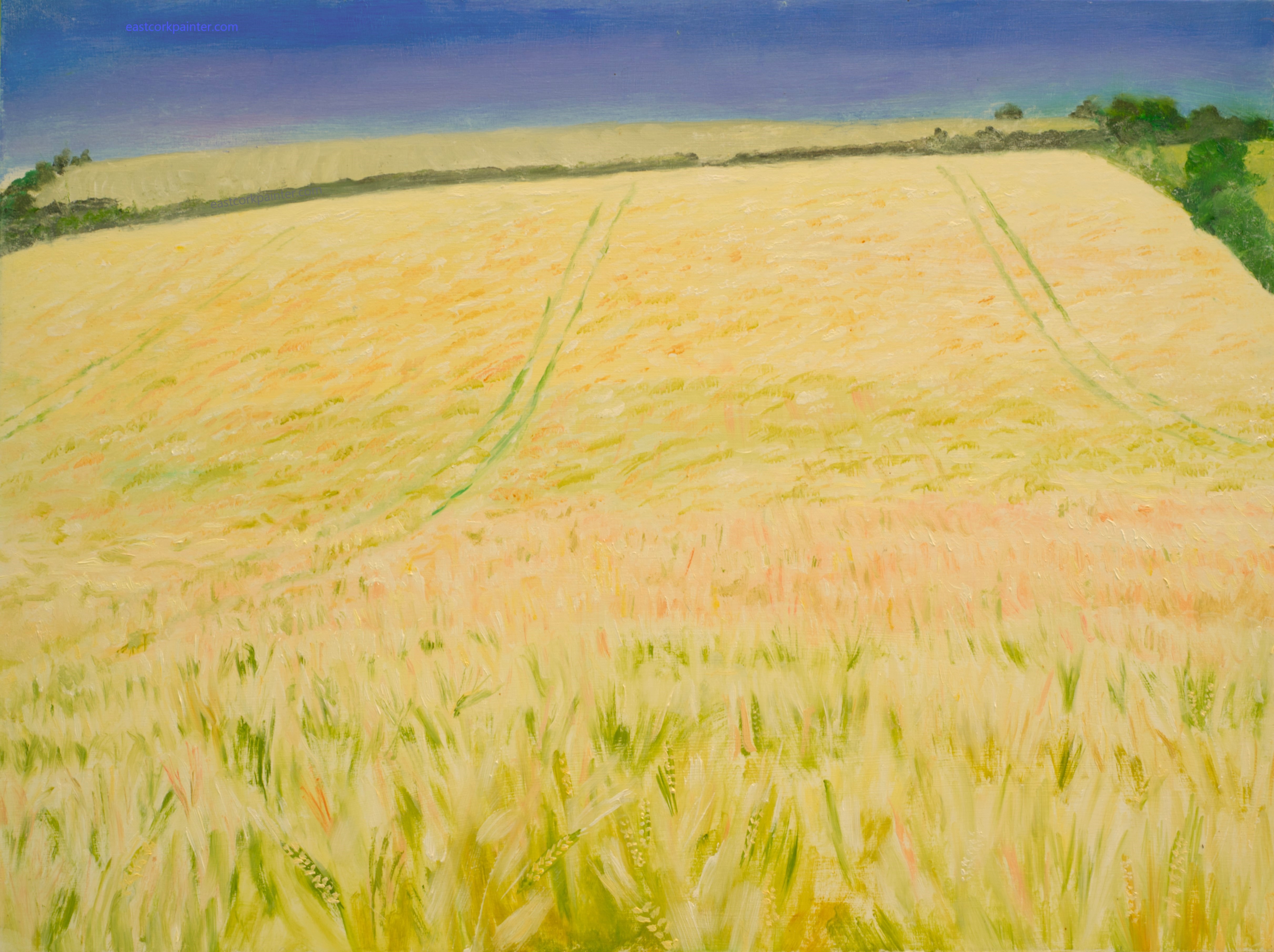 In spring and early summer, I give a hand in my sister’s flower field. Planting seed trays and pots and weeding, it can be a busy time. This painting depicts Claire in the farm shed doing flower bunches. It’s late September and near the end of the flower season. I thought the composition would be interesting, surrounded by flowers fanning out and going sideways and down rather than the usual upright direction. I’ve not done a formal painting of her before.